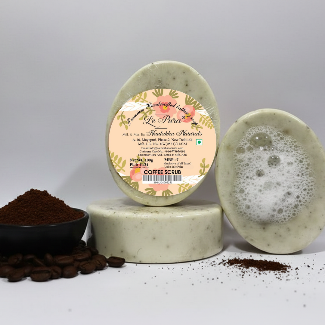Enjoy the ultimate soothing experience with our Le Pura coffee scrub handcrafted soap. Each bar is expertly created to provide a rich combination of exfoliation and nutrition. Allow the rich, fragrant smell of freshly ground coffee beans to awaken your senses while you engage in a sumptuous beauty routine.