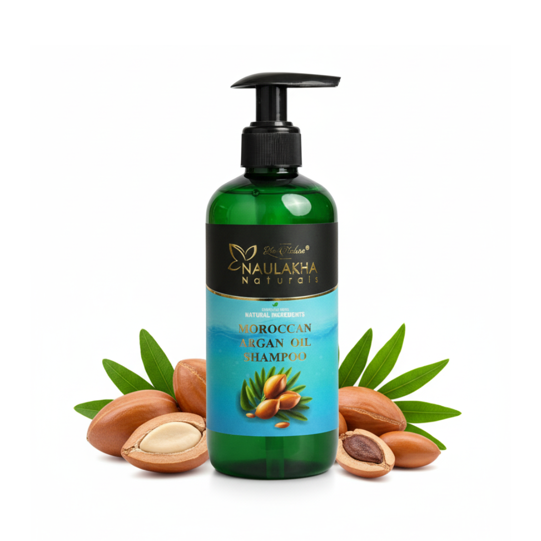 Le Natura Naulakha Naturals Moroccan Argan Oil Hair Shampoo, a sulfate-free concoction packed with the repairing power of Moroccan Argan Oil, will revitalize your hair. This paraben-free mixture nourishes and cleanses while revealing the benefits of argan oil for beautiful hair. All hair types can benefit from its ability to restore damage, increase elasticity, and impart a brilliant shine. Elevate your routine with Le Natura Naulakha Naturals and lose yourself in the richness of Moroccan beauty. Explore the secret to hair that is incredibly smooth, silky, and radiant—experience the height of luxury and natural care with every wash.